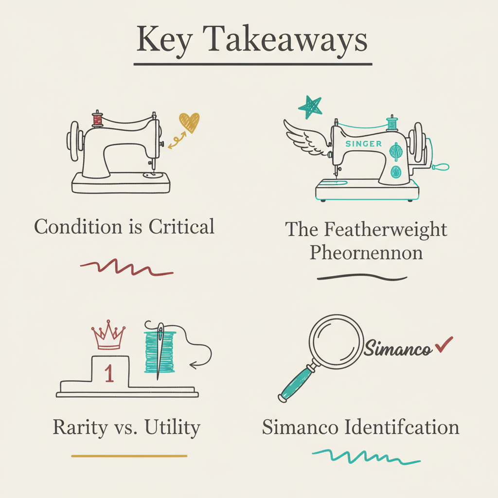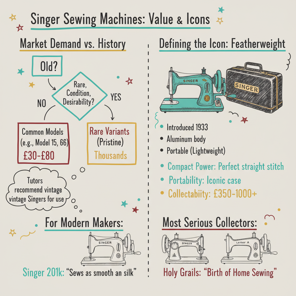 • The Featherweight Phenomenon: The Singer 221 “Featherweight” remains one of the most consistently valuable and sought-after portable models.